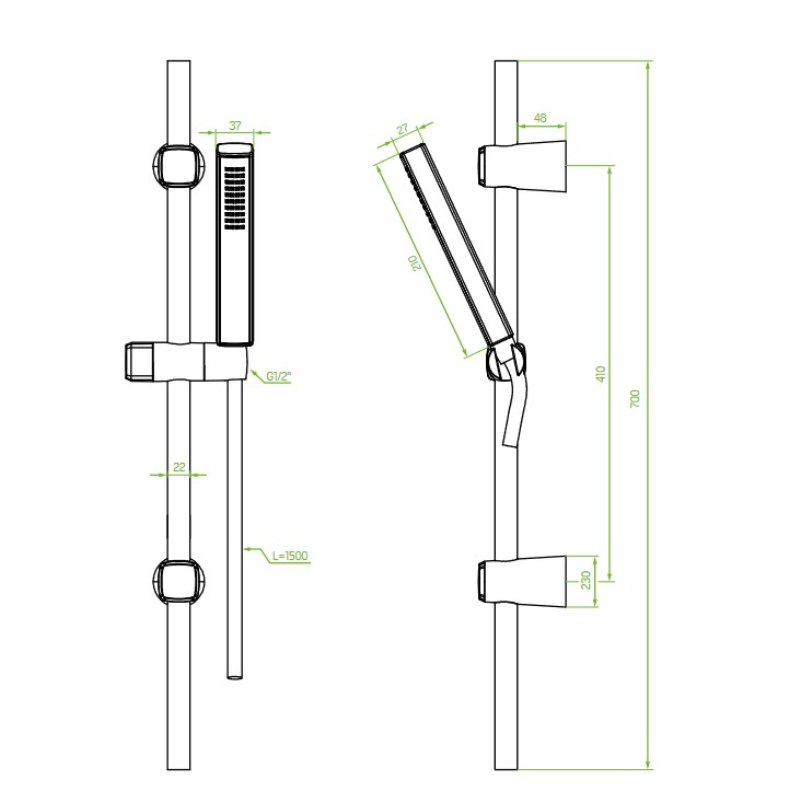 Тръбно окачване Polla с шлаух, ръчен душ и държач цвят розово злато 17351 LAVEO