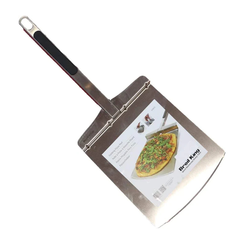 Лопатка за пица на марката BROIL KING. Невероятно удобната, сгъваема лопатка за пица на BROIL KING е задължителна част от арсенала на всеки почитател на неустоимите тестени шедьоври. Всеки пицар може да се закълне, че най-важната съставка след тестото и качествените продукти е страхотната неръждаема лопатка за боравене с пицата.