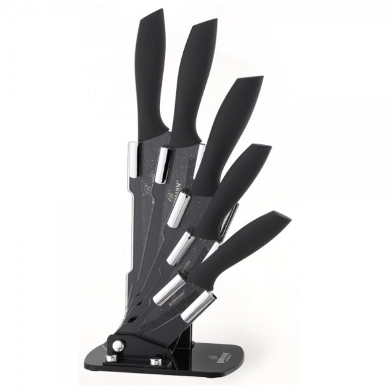 Комплект кухненски ножове 5бр с акрилна поставка черен