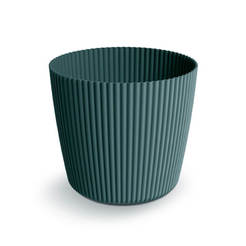 PVC саксия от серията Tubo на марката PROSPERPLAST. Изработена от висококачествена пластмаса в цвят зелен бор с матово покритие. С поставка в цвят Naturo, която съдържа до 33% естествено дърво. Диаметър на поставката: 11.5 см.
