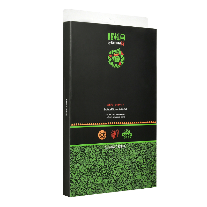За създаването на Inca майсторите на Samura черпят вдъхновение от традициите на народите от Централна и Южна Америка. С ново поколение керамично острие от циркониев диоксид експертите от Samura доказват за пореден път уменията си да пресъздадат класическа концепция с помощта на на съвременни технологии. Inca остриетата са изключително устойчиви на окисляване и ще запазят формата си практически завинаги, без да се нуждаят от поддръжка. Това се дължи на факта, че материалът, от който са изработени, се нарежда в топ три на най-издръжливите материали редом с диаманта и корунда.