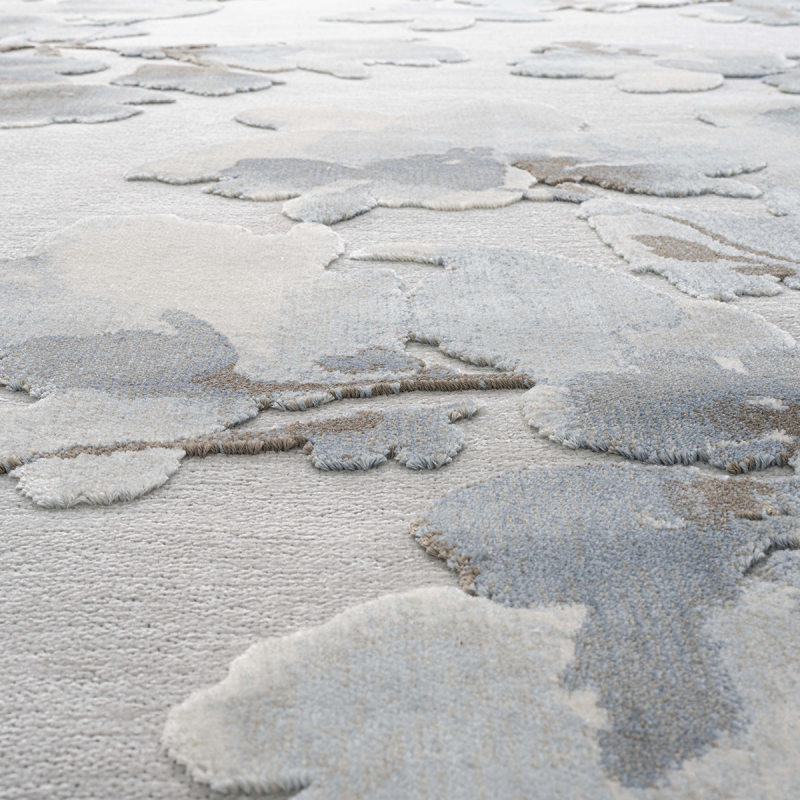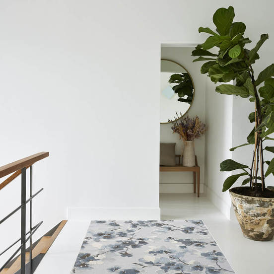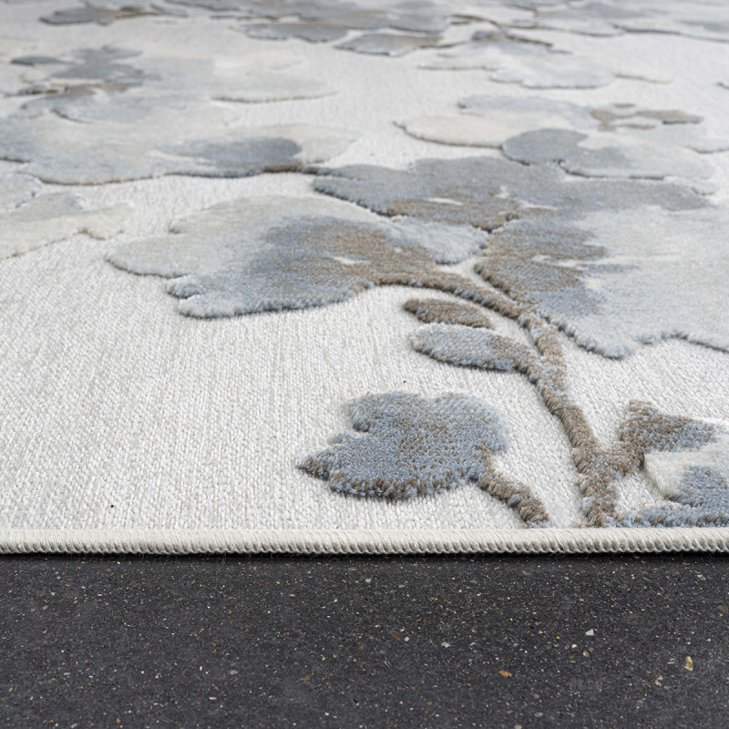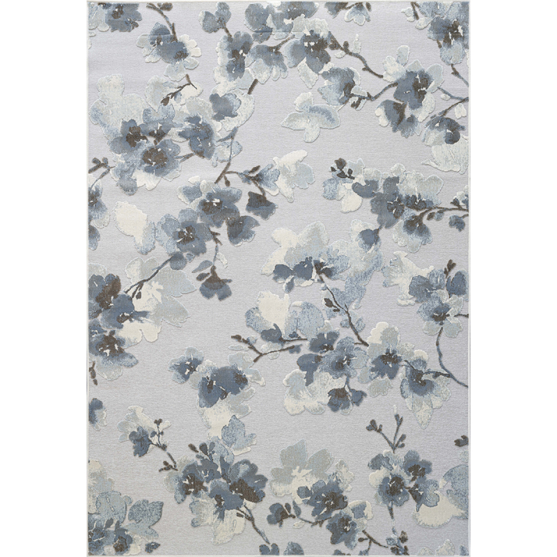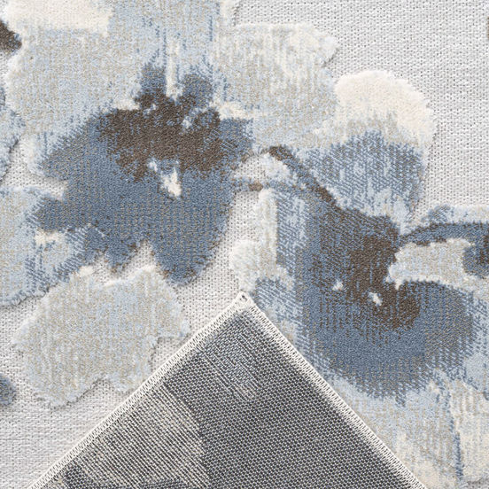 Килим Генова противоплъзгащ гръб 100 х 140 см сини цветя сиво