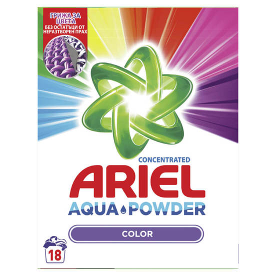 Прах за пране Ариел за цветни тъкани. Този прах ще Ви позволи да постигнете сензационни резултати при пране, дори и на най-мръсните дрехи и тъкани. Технологията Aqua Powder прониква дълбоко във влакната на тъканите, благодарение на което премахва дори най-упоритите петна без особени проблеми.