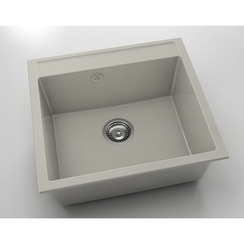 Единична кухненска мивка за вграждане на марката FAT. Изработена от полимермрамор с габаритни размери 51 х 56 см в цвят сив гранит. Към комплекта е включен висококачествен италиански сифон за мивка с размер ф90 мм.