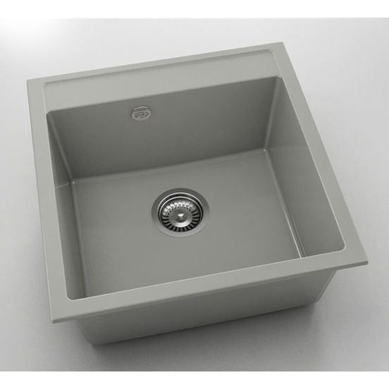 Единична кухненска мивка за вграждане на марката FAT. Изработена от полимермрамор с габаритни размери 51 х 51 см в цвят инокс. Към комплекта е включен висококачествен италиански сифон за мивка с размер ф90 мм.