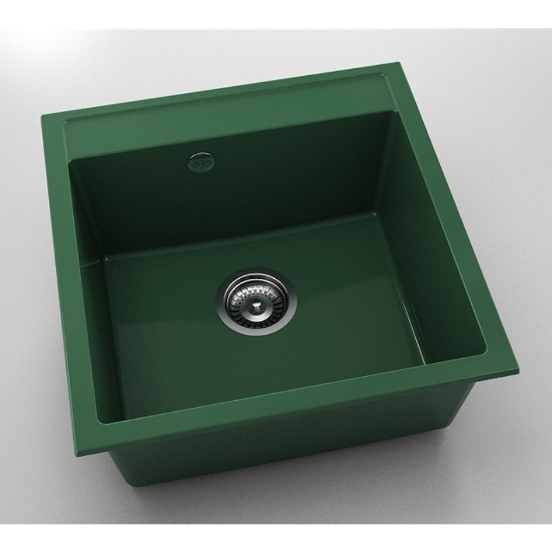 Единична кухненска мивка за вграждане на марката FAT. Изработена от полимермрамор с габаритни размери 51 х 51 см в цвят зелен гранит. Към комплекта е включен висококачествен италиански сифон за мивка с размер ф90 мм.