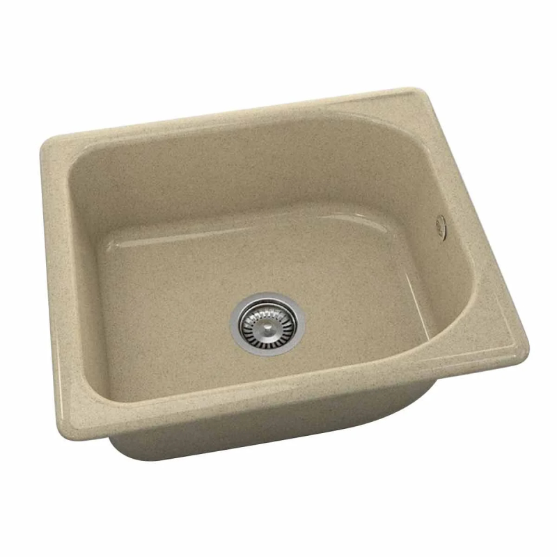 Единична кухненска мивка за вграждане FAT, изработена от полимермрамор с размер 51 х 60 см. Към комплекта е включен висококачествен италиански сифон за мивка с размер Ф90 мм.