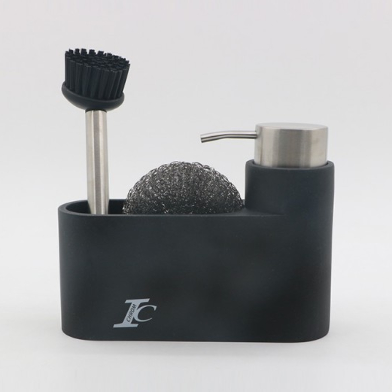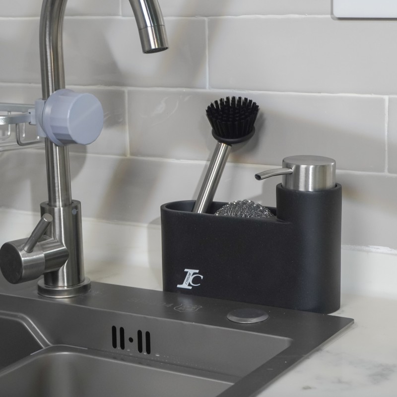 Дозатор за течен сапун с поставка за гъба/четка черен 59863B INTER CERAMIC