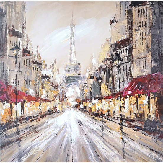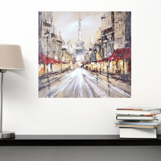 Картина за стена 60 x 60 см Улица в Париж, канава принт печат с релеф маслени бои.