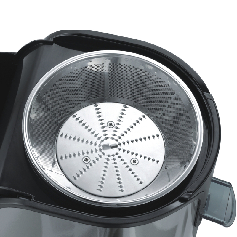 Съдът за сок с вместимост 0.75 литра е достатъчен за приготвянето на няколко чаши свеж сок наведнъж, докато контейнерът за отпадъчна пулпа е с обем 1.8 литра, което позволява продължителна работа без нужда от често почистване. Уредът разполага с две настройки за скорост, които осигуряват оптимални резултати както при меки, така и при твърди плодове и зеленчуци. Микро ситото от неръждаема стомана гарантира максимално извличане на сока, като запазва всички хранителни вещества и витамини. Прозрачният капак позволява да следите процеса, а противоплъзгащите крачета осигуряват стабилност по време на работа.