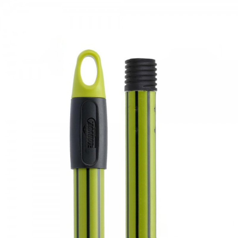 Метална дръжка. Дръжката е с дължина 130 см и диаметър 34 мм. С гумено покритие. С права резба и отвор за окачване.