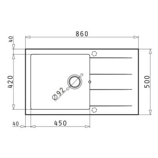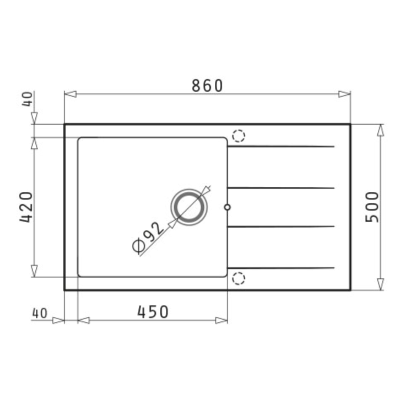Гранитна кухненска мивка PYRAMIS с размери 86 х 50 см. Подходяща за вграждане в шкаф 50 см.