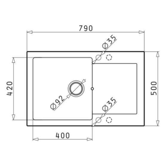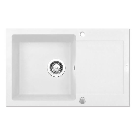 Гранитна кухненска мивка PYRAMIS с размери 79 х 50 см. Подходяща за вграждане в шкаф 60 см. Гранитната мивка за кухня се доставя с фабрично разпробити отвори - един за стоящ смесител и един за монтиране на механична врътка, чрез която може да запушите или отпушите сифона на мивката. Врътката контролира положението на автоматичния сифон чрез завъртане на ляво или на дясно. В едната позиция сифонът на мивката се запушва, а в другата се отпушва.