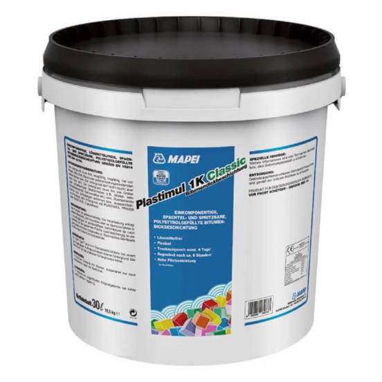 Битумна хидроизолация Plastimul 1K Classic 20.4 кг MAPEI е висококачествена, еднокомпонентна, полимерно модифицирана хидроизолация на битумна основа, специално създадена за надеждна защита на строителни конструкции. Продуктът е под формата на обмазна паста, която съдържа полистиролови сфери и се отличава със своето леко и удобно за нанасяне консистенция. Plastimul 1K Classic не съдържа разтворители, което го прави екологично по-безопасен избор за различни хидроизолационни дейности. Той намира приложение при изолация на бетонови фундаменти, тухлени и подпорни стени, които са в постоянен контакт с почвата и изложени на високи натоварвания.
