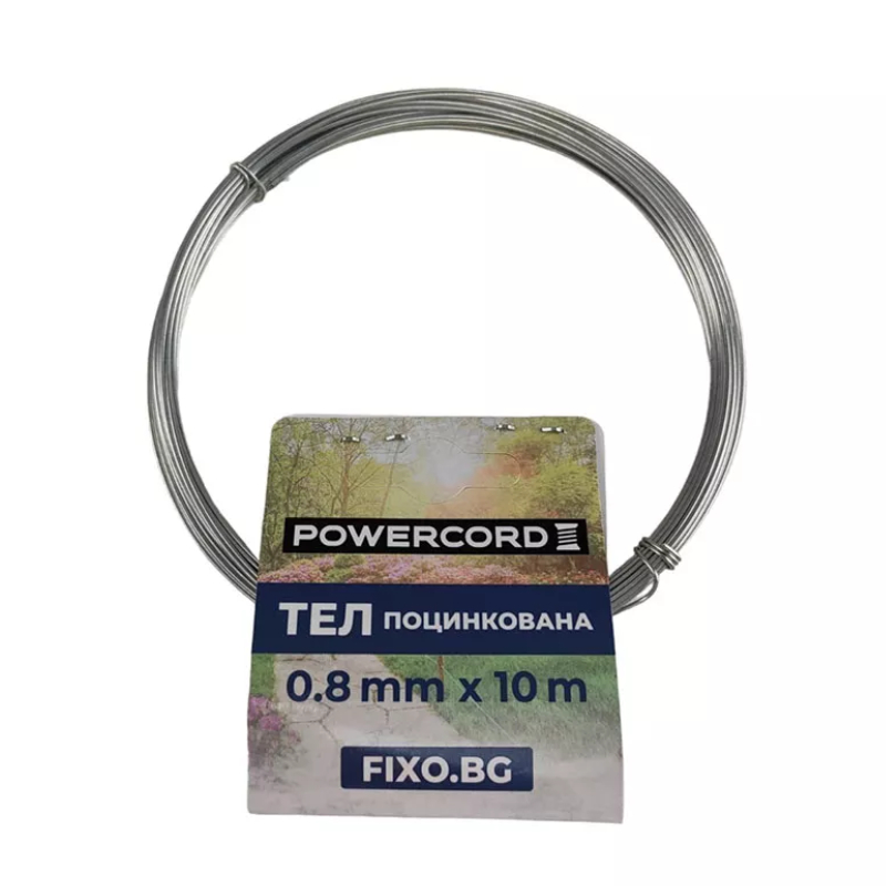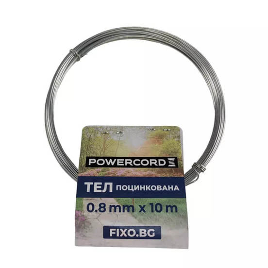 Поцинкована тел на марката POWERCORD. Телта е с дебелина ф0.8 мм. Предлага се на ролка с дължина 10 м.
