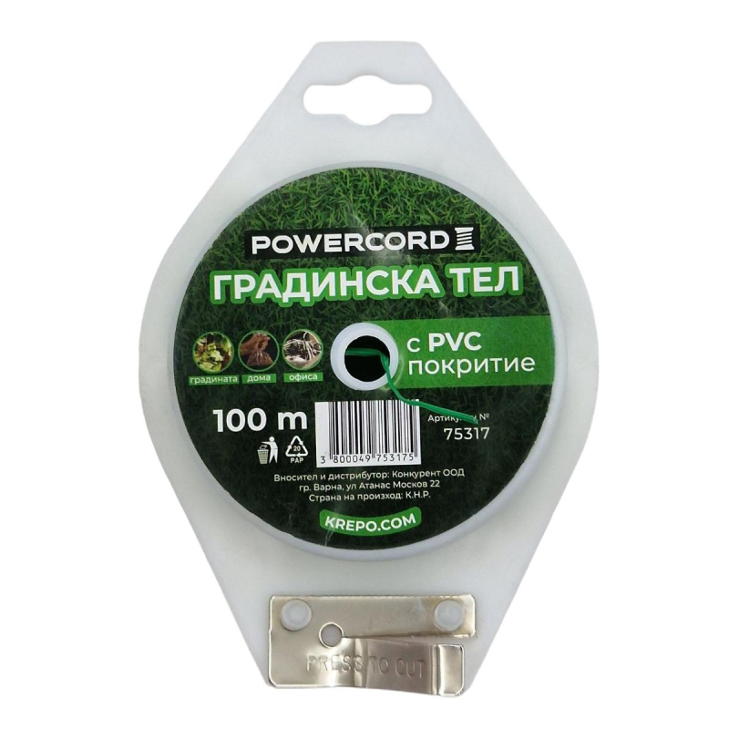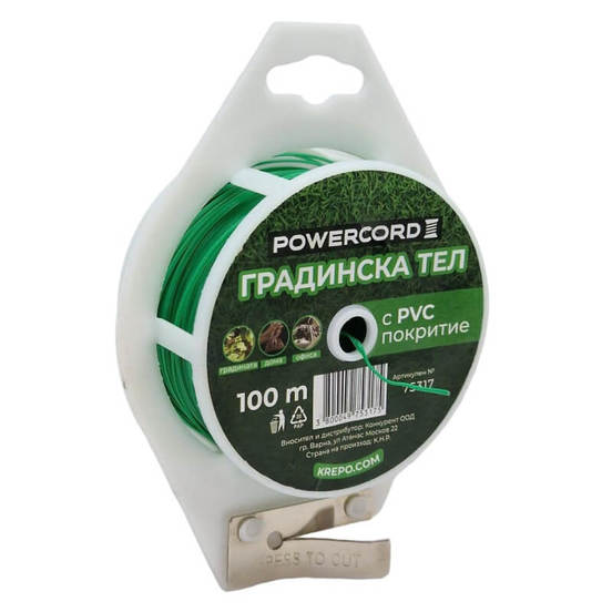 Градинска тел с PVC покритие POWERCORD. Дължина: 100 м. Цвят: зелен.