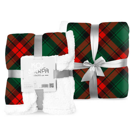 Коледно одеяло 150 х 200 см тъмно зелено и червено карета.