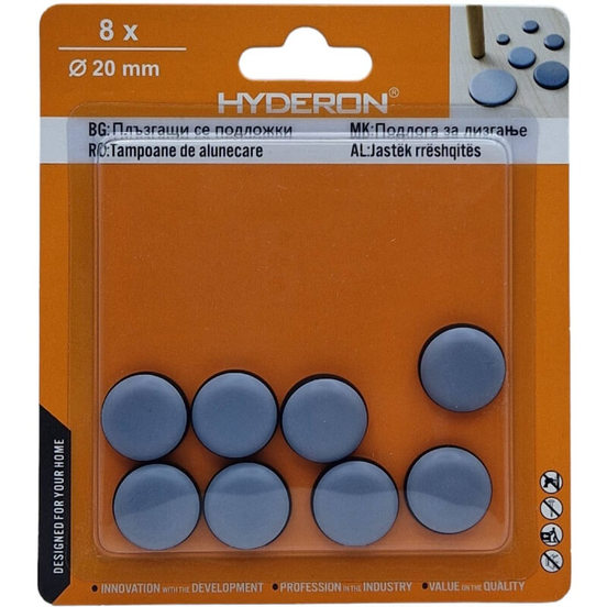 Подложки за лесно плъзгане самозалепващи ф20 х 5 мм, сиви на марката HYREDON. Опаковка: 8 бр./пакет