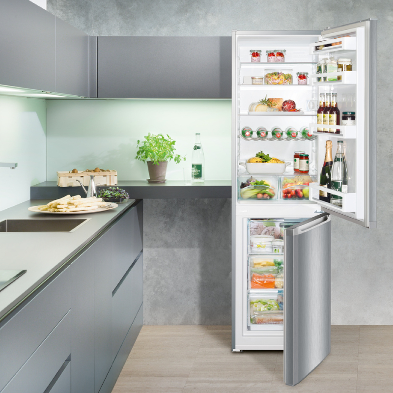 Ако търсите съвършен баланс между капацитет, тиха работа и енергийна ефективност, LIEBHERR CUele 331-26 е идеалният хладилник с долна камера за вашата кухня. Със своя елегантен инокс дизайн и общ полезен обем от 296 литра, този модел предлага практично и добре организирано вътрешно пространство - 212 литра за хладилника и 84 литра за фризера, което е достатъчно за нуждите на всяко семейство. Благодарение на SmartFrost технологията, натрупването на скреж е минимално, а почистването - значително улеснено.