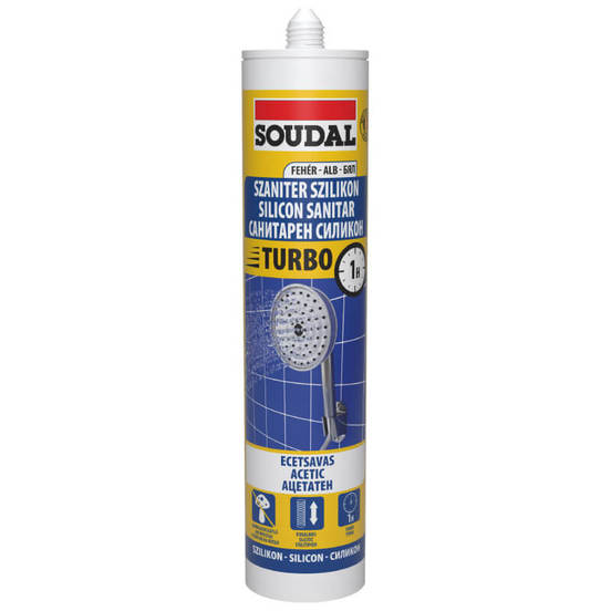 Turbo Sanitary Silicone от SOUDAL е бързосъхнещ санитарен силиконов уплътнител от най-висок клас, предназначен за надеждно уплътняване на фуги в бани, кухни и други влажни помещения. Благодарение на уникалната си формула, продуктът осигурява втвърдяване в дълбочина до три пъти по-бързо в сравнение със стандартните санитарни силикони. Това позволява по-бързо зареждане и експлоатация на пространствата след работа.