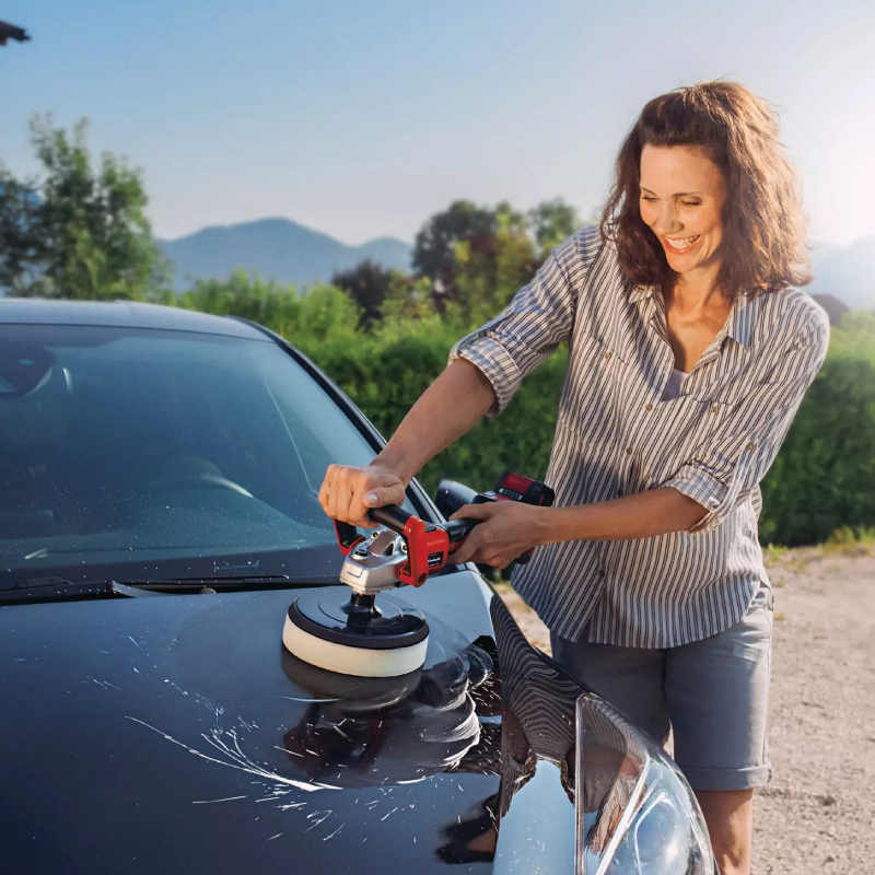 Акумулаторната полираща машина CE-CP 18/180 Li E-Solo на EINHELL е мощен и универсален инструмент, подходящ както за полиране, така и за шлайфане на различни повърхности. Безчетковият двигател осигурява висока ефективност, по-дълъг живот на машината и по-добро използване на енергията от акумулаторните батерии Power X-Change 18 V. Големият полиращ диск с диаметър 180 мм позволява бързо покриване на големи площи, а електронният контрол на оборотите от 500 до 3000 об./мин дава възможност за прецизно настройване спрямо материала и вида на работа. Машината е проектирана за непрофесионална употреба и е идеална за ентусиасти "направи си сам", които искат гъвкавост и ефективност с един инструмент.