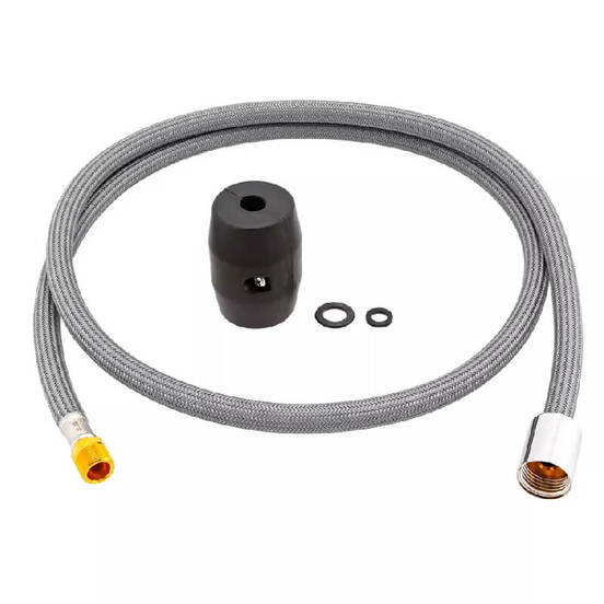 Изработен от здрав метал и със стандартно присъединяване 1/2", шлаухът е съвместим с повечето съвременни кухненски смесители. Сивият цвят придава модерен и дискретен вид, който се вписва лесно във всяка кухня. Практично и стилно решение за по-голяма функционалност във вашата кухня.