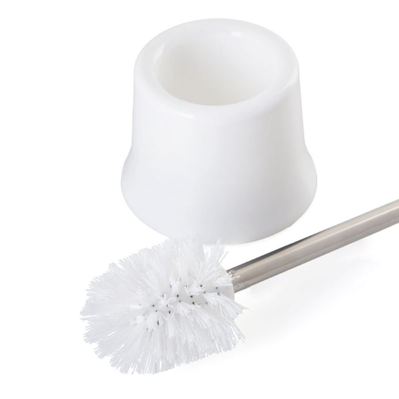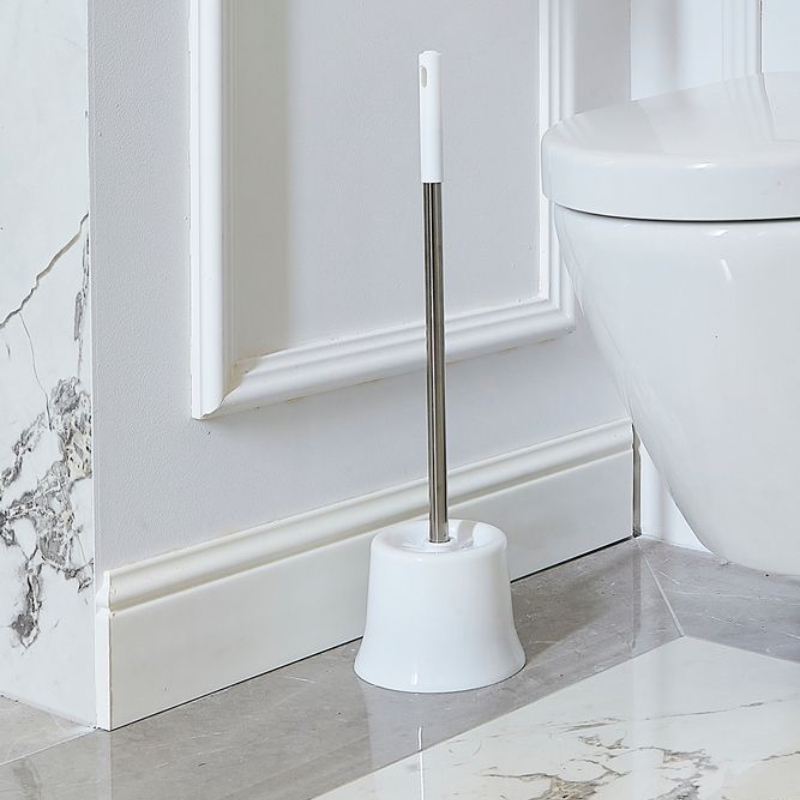 Тоалетната четка с черен пластмасов контейнер предлага практично и естетично решение за поддържане на чистота в банята. Контейнерът е лек, устойчив и с гладка повърхност, което го прави лесен за почистване и поддръжка.