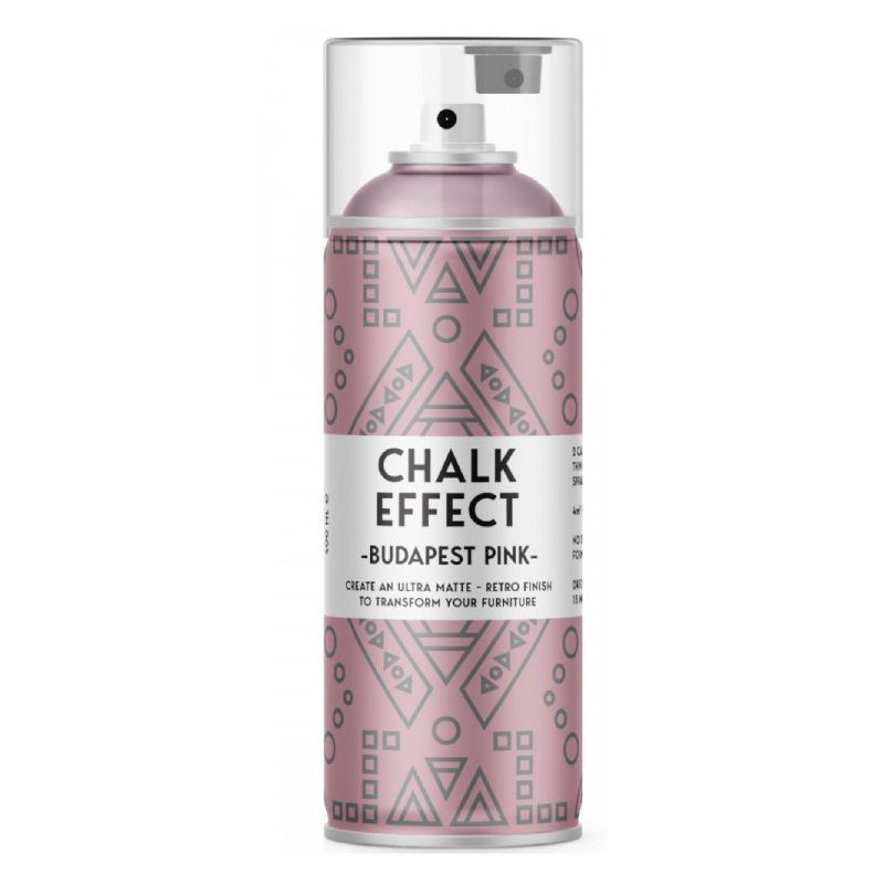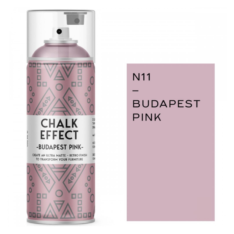 Преобразете мебелите и декорациите си с акрилния спрей боя COSMOS Chalk Effect в цвят "Budapest Pink" № 11 - нежен, романтичен нюанс с матов тебеширен ефект, който придава усещане за уют, финес и женствена елегантност на всяко пространство. Този 100% акрилен продукт е подходящ за широка гама повърхности, включително дърво, метал, неръждаема стомана, стъкло, керамика, камък, текстил, хартия и други. С отлична покривност и лесно нанасяне, боята е идеална както за любителски интериорни трансформации, така и за професионални проекти. Разполага с две дюзи - бяла за прецизни и фини детайли и черна за равномерно покриване на по-големи повърхности, без капки и следи.