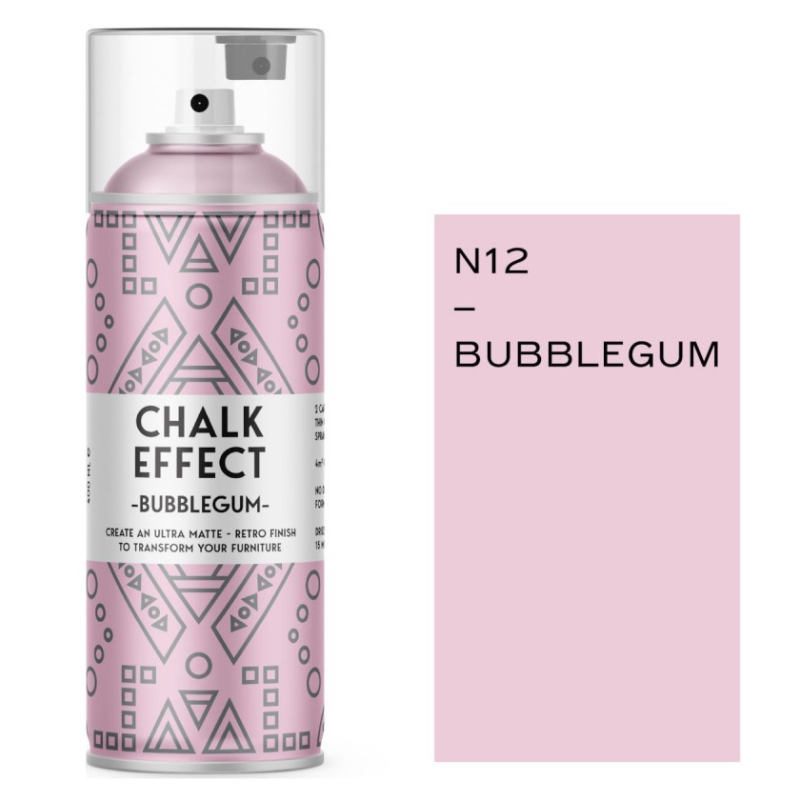 Преобразете мебелите и декорациите си с акрилния спрей боя COSMOS Chalk Effect в цвят "Bubble Gum" № 12 - игрив, свеж и наситен розов нюанс с матов тебеширен ефект, който носи настроение, енергия и модерен поп акцент във всяко пространство. Този 100% акрилен продукт е съвместим с различни повърхности като дърво, метал, неръждаема стомана, стъкло, керамика, камък, текстил, хартия и други. Отличава се с много добра покривност и лесно нанасяне, което го прави подходящ както за креативни домашни проекти, така и за професионална декорация. Оборудван е с две дюзи - бяла за детайлна работа и черна за бързо и равномерно покритие на по-големи площи, без капки и петна.