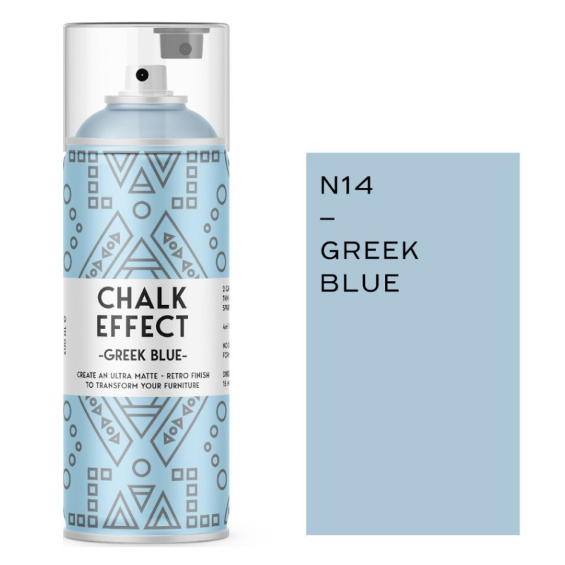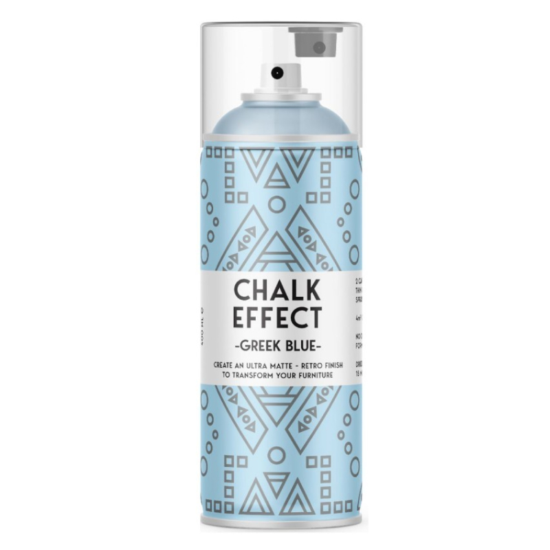 Преобразете мебелите и декорациите си с акрилния спрей боя COSMOS Chalk Effect в цвят "Greek Blue" № 14 - дълбок, средиземноморски нюанс с матов тебеширен ефект, който вдъхва усещане за свежест, свобода и елегантна простота. Вдъхновен от сините покриви и прозорци на гръцките острови, този 100% акрилен продукт е идеален за разнообразни повърхности като дърво, метал, неръждаема стомана, стъкло, керамика, камък, текстил, хартия и други. С отлична покривност и лесно нанасяне, боята е подходяща както за домашни проекти, така и за професионална употреба. Разполага с две дюзи - бяла за детайлна работа и черна за бързо и равномерно покритие на големи повърхности, без капки и следи.