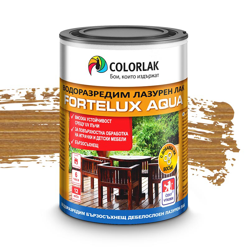 - Тип продукт: Водоразтворим, лазурен лак с восък