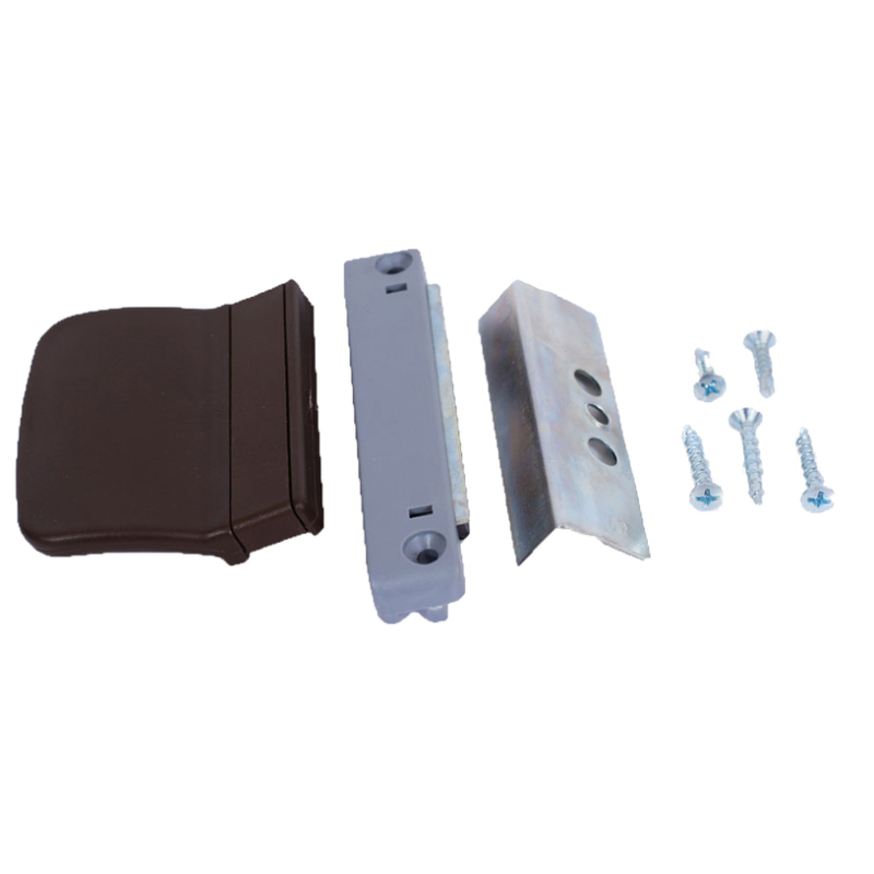 Магнитен шнапер, предназначен за фиксиране и стабилно затваряне на PVC врати и прозорци. Благодарение на магнитния си механизъм, шнаперът осигурява тихо, плавно и сигурно задържане на крилото в затворено положение, без необходимост от традиционни заключващи елементи.