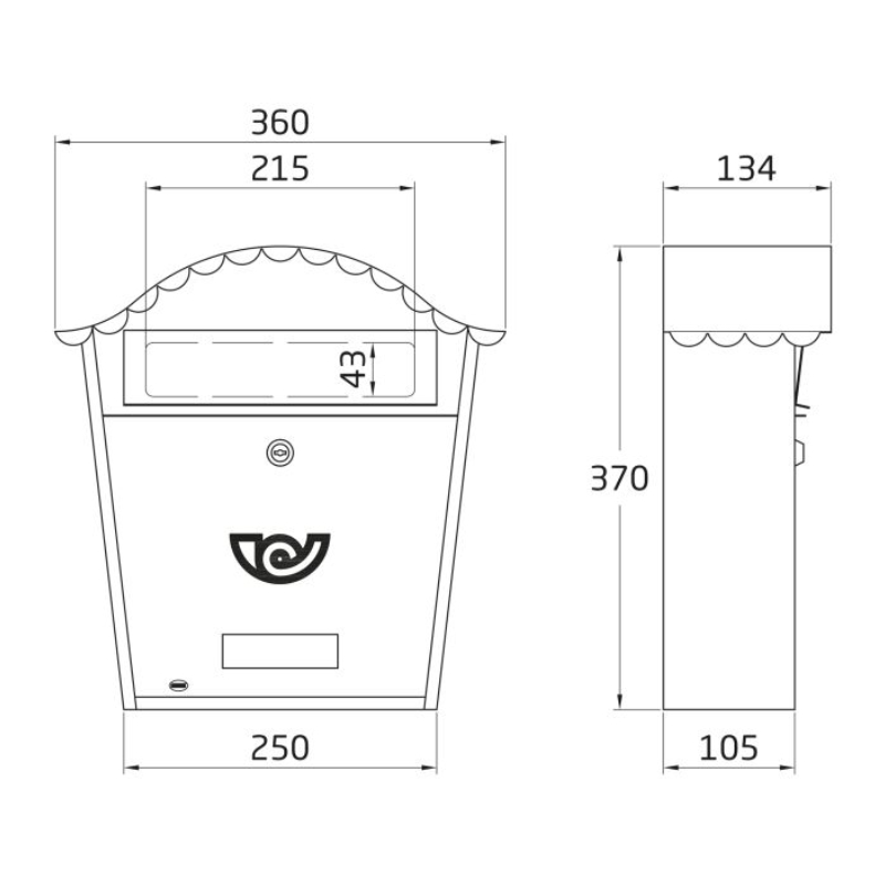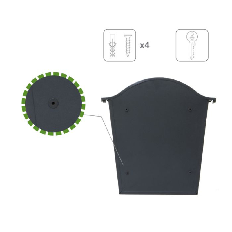 Пощенската кутия се предлага в комплект с 2 ключа и елементи за фиксиране.