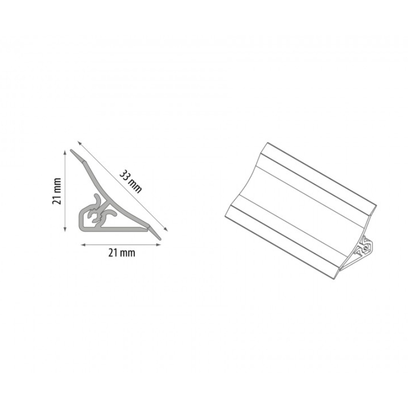 Тапата за водобранна лайсна CEZAR в цвят Колизеум е предназначена за завършване на крайни участъци на лайсни с ширина 33 мм. Тя осигурява чист и подреден завършек, като същевременно предпазва крайния ръб от влага, прах и замърсявания. Подходяща е за кухненски плотове и работни повърхности, където е важно практичното и естетично изпълнение.