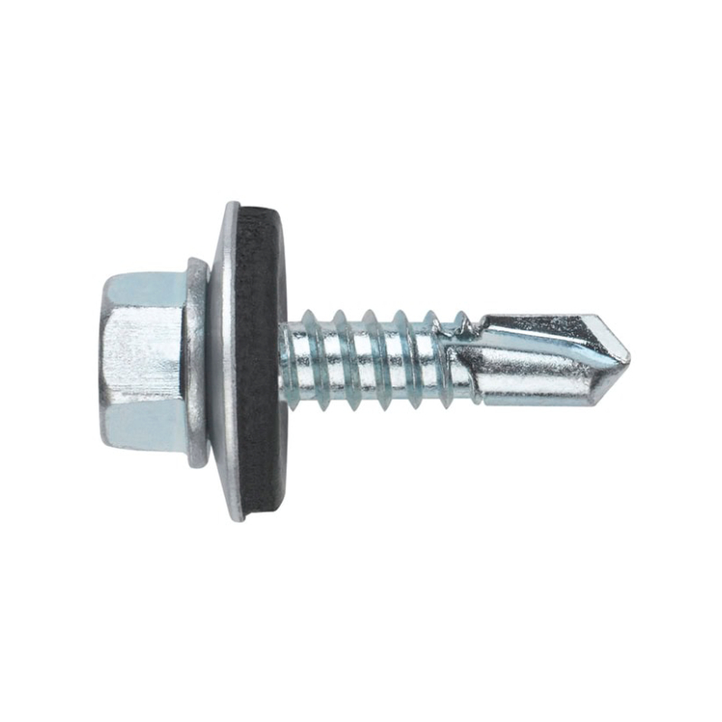 Интегрираната вулканизирана EPDM-шайба гарантира водонепропускливост при фасади, покриви или други външни приложения, като същевременно предпазва повърхността от повреди. Шестостенната глава със щампована шайба осигурява стабилно завиване и равномерно разпределение на натоварването. Изработен е от поцинкована закалена стомана, което осигурява устойчивост и дълготрайност.