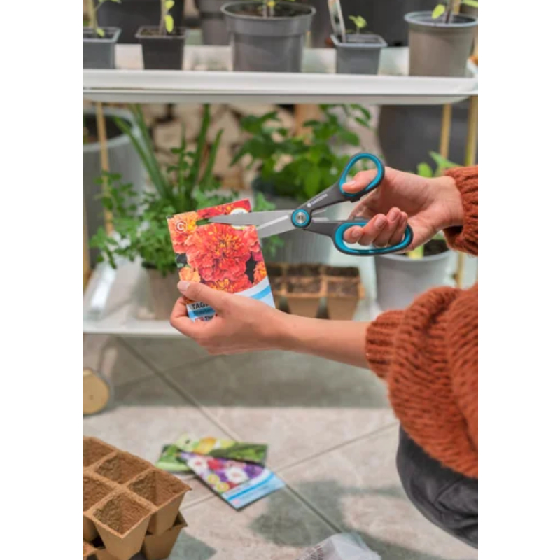 GARDENA MultiCut са универсални ножици, предназначени за ежедневна употреба у дома, в градината или при хоби дейности. Със здрави и остри остриета от неръждаема стомана, те осигуряват чисто и прецизно рязане на хартия, картон, въжета и дори опаковъчни материали.