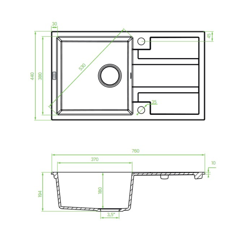 - Материал на мивката: Устойчив композит (гранитен ефект)