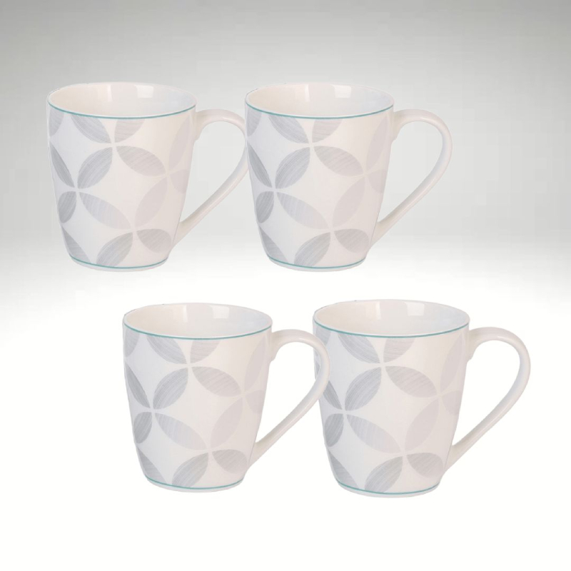 Практичен и стилен комплект от 4 порцеланови чаши с вместимост 360 мл - отличен избор за ежедневна употреба у дома или в офиса. Изработени от качествен порцелан, чашите са с удобна форма и гладка повърхност, което ги прави подходящи както за кафе, така и за чай или други топли напитки. Семплият, но модерен дизайн се вписва лесно във всеки интериор - от класическа кухня до съвременен офис.