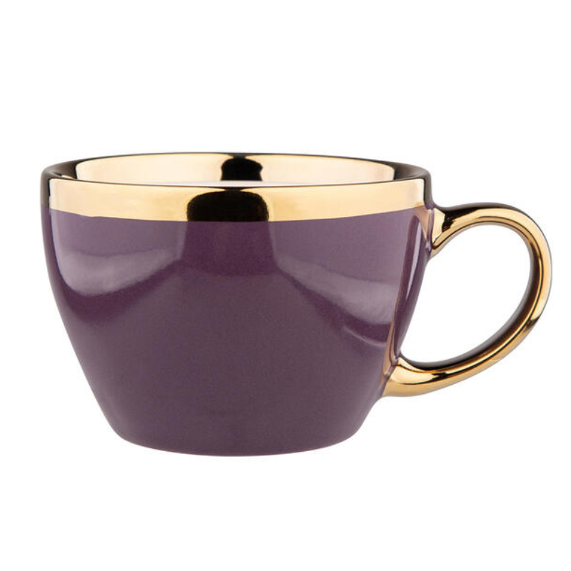 Чашата Aurora Gold е създадена за ценителите на стил и комфорт. Изработена от висококачествена порцелан, тя предлага вместимост от 300 мл - идеална за голяма доза чай, ароматно кафе или гъст горещ шоколад.