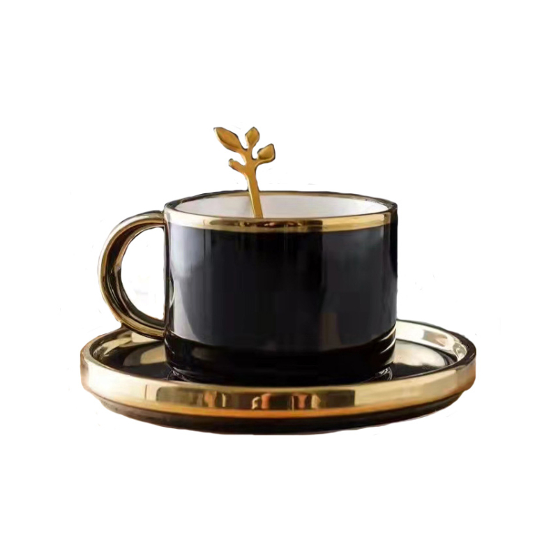 Стилна и изискана, тази порцеланова чаша с чинийка и лъжичка впечатлява с елегантен черен цвят, изящно допълнен със златни детайли. С вместимост 200 мл, тя е идеална за сервиране на кафе, чай или капучино, като добавя нотка лукс към всяка напитка.