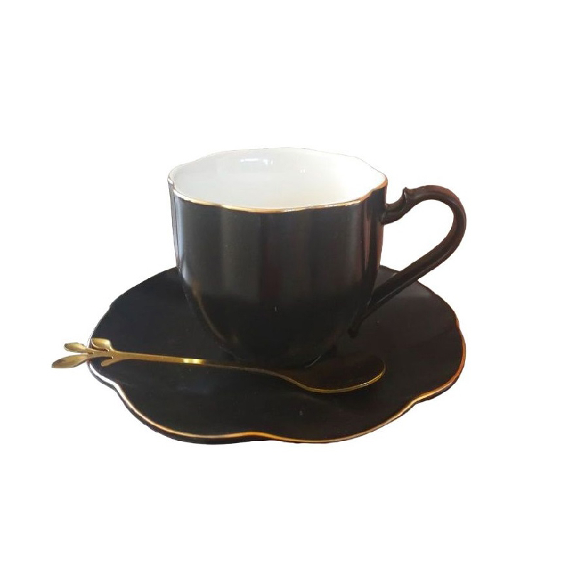 Изключително елегантен комплект за ценители на изтънчения стил. Порцелановата чаша впечатлява с нежна къдрава форма и класически черен цвят, умело подчертан със златен кант. Чинийката следва същата изисканост, създавайки завършен и луксозен вид. Подходяща за сервиране на кафе, чай или капучино.