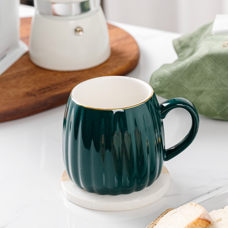 Стилна и впечатляваща, тази порцеланова чаша с вместимост 400 мл съчетава функционалност с изискан дизайн. Свежият зелен цвят се допълва от елегантен златен кант, който придава завършен и луксозен вид. Перфектен избор за кафе, чай, лате или капучино - както у дома, така и в офиса.