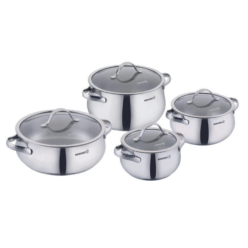 Издигнете готварското си изживяване с 8-частовия комплект тенджери Korkmaz Samara, създаден за висока ефективност, стил и здравословно готвене. Изработен от премиум неръждаема стомана 18/10, този комплект е устойчив на корозия, лесен за поддръжка и изключително дълготраен.