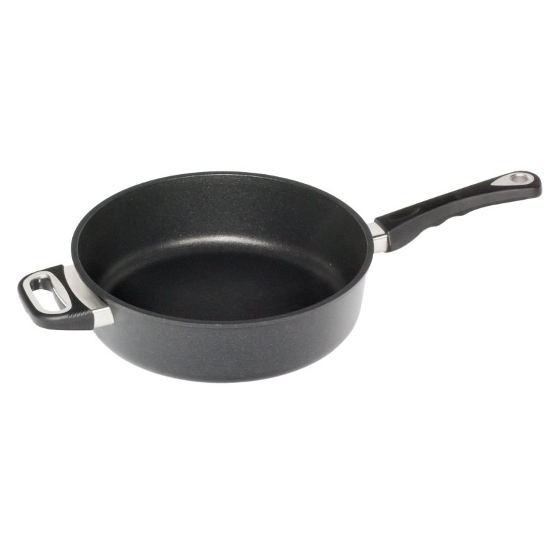 Сотиращият тиган AMT Gastroguss - ⌀20 см е създаден за интензивна употреба в домашна или професионална кухня. Изработен от висококачествен лят алуминий, той достига 300°C само за 3 минути, осигурявайки изключителна топлопроводимост и бърза реакция при термична обработка.