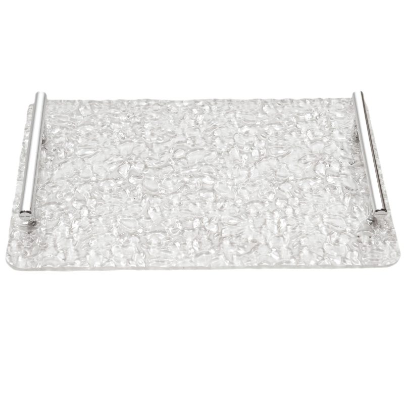 Внесете стил, изтънченост и практичност в дома си с този елегантен правоъгълен поднос - идеалното допълнение към всяко пространство, където се цени красотата в детайла. Изработен от висококачествен прозрачен акрил и с изящни метални елементи, този поднос не е просто функционален съд за сервиране, а истински декоративен акцент.