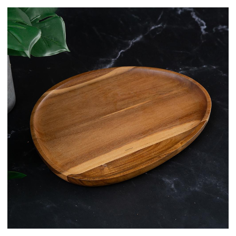Дървеното плато за сервиране с дължина 26.5 см и ширина 21.5 см е стилен и практичен аксесоар за всяка трапеза. Изработено от естествено дърво, то придава естествен и топъл характер на всяко поднасяне - от мезета и сирена до плодове, ядки и малки десерти.