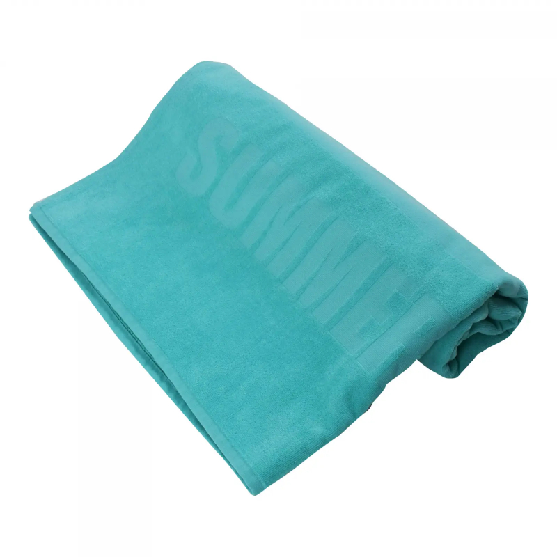 Подарете си комфорт и свежест на плажа с плажна кърпа САМЪР в елегантен тюркоазен цвят. Изработена от 100% висококачествен памук, тази кърпа съчетава мека текстура и отлична попивателност, което я прави идеален избор за почивка край морето, басейна или след душ у дома.