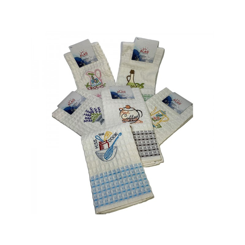 Внесете елегантност и уют във вашата кухня с тази кухненска кърпа с бродерия. Със своите размери 45 x 65 см, тя е идеална за ежедневна употреба - за подсушаване на съдове, избърсване на ръце или декорация на кухнята.