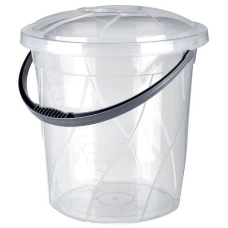 Прозрачната кофа с капак е изработена от първокласен полипропилен и осигурява здравина и дълготрайна употреба. Черната пластмасова дръжка с удобен захват улеснява пренасянето, а прозрачността позволява лесен контрол на съдържанието.