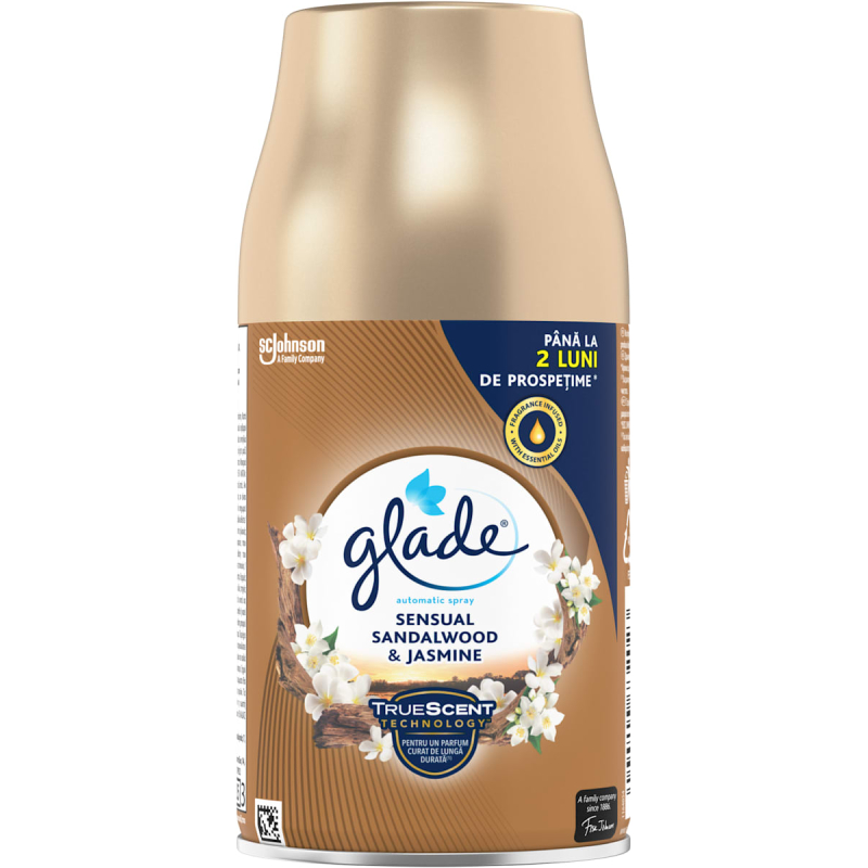 Пълнителят Glade с аромат на сандалово дърво осигурява дълготрайна свежест във всяко помещение, като неутрализира неприятните миризми и създава уютна атмосфера. Концентрираният аромат се освобождава лесно чрез автоматичния дозатор, като едно докосване е достатъчно за пълно освежаване на въздуха.